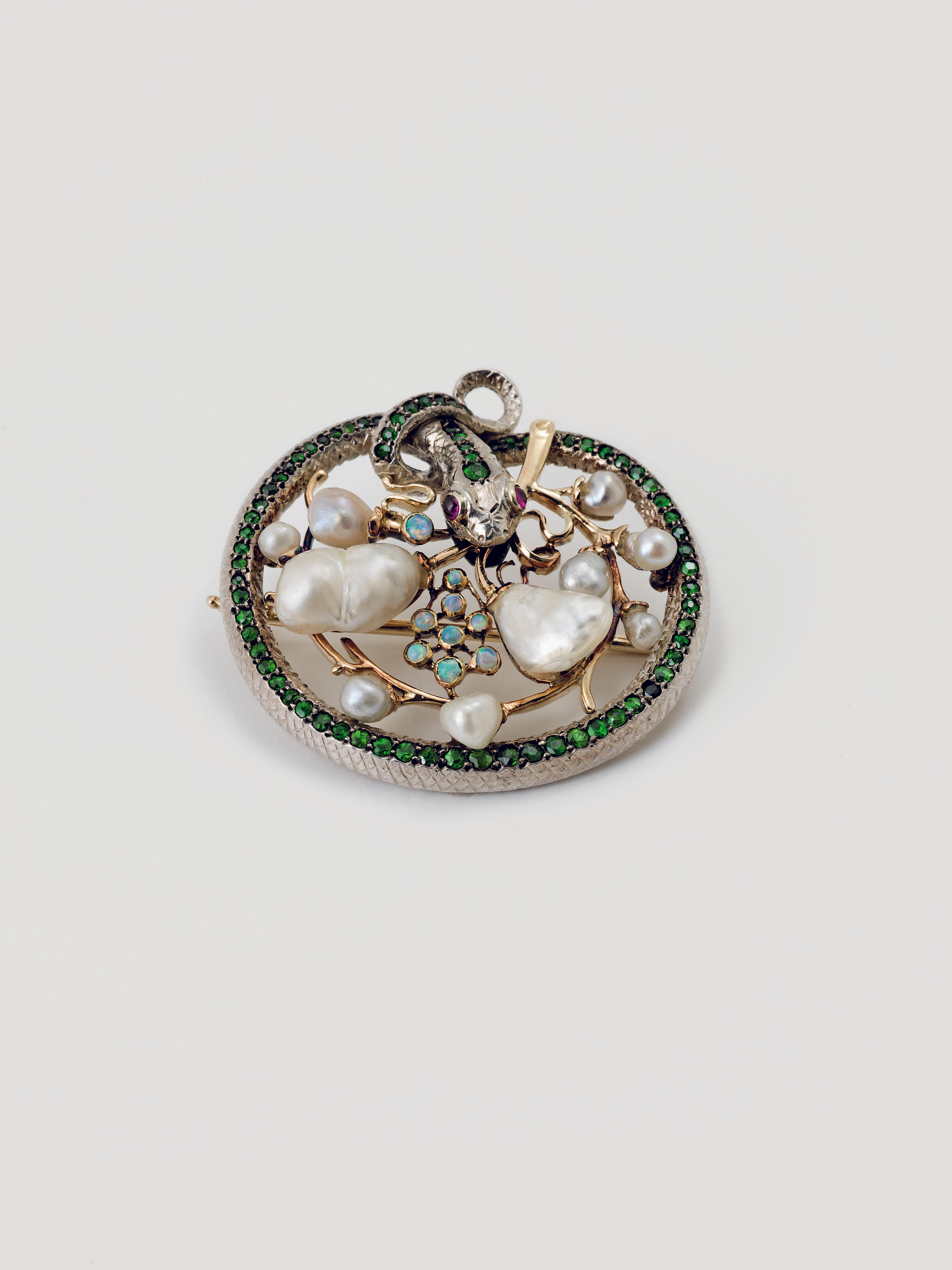 Gold, Silber, gegossen, gelötet, ziseliert, Rubine, Olivine, Opale