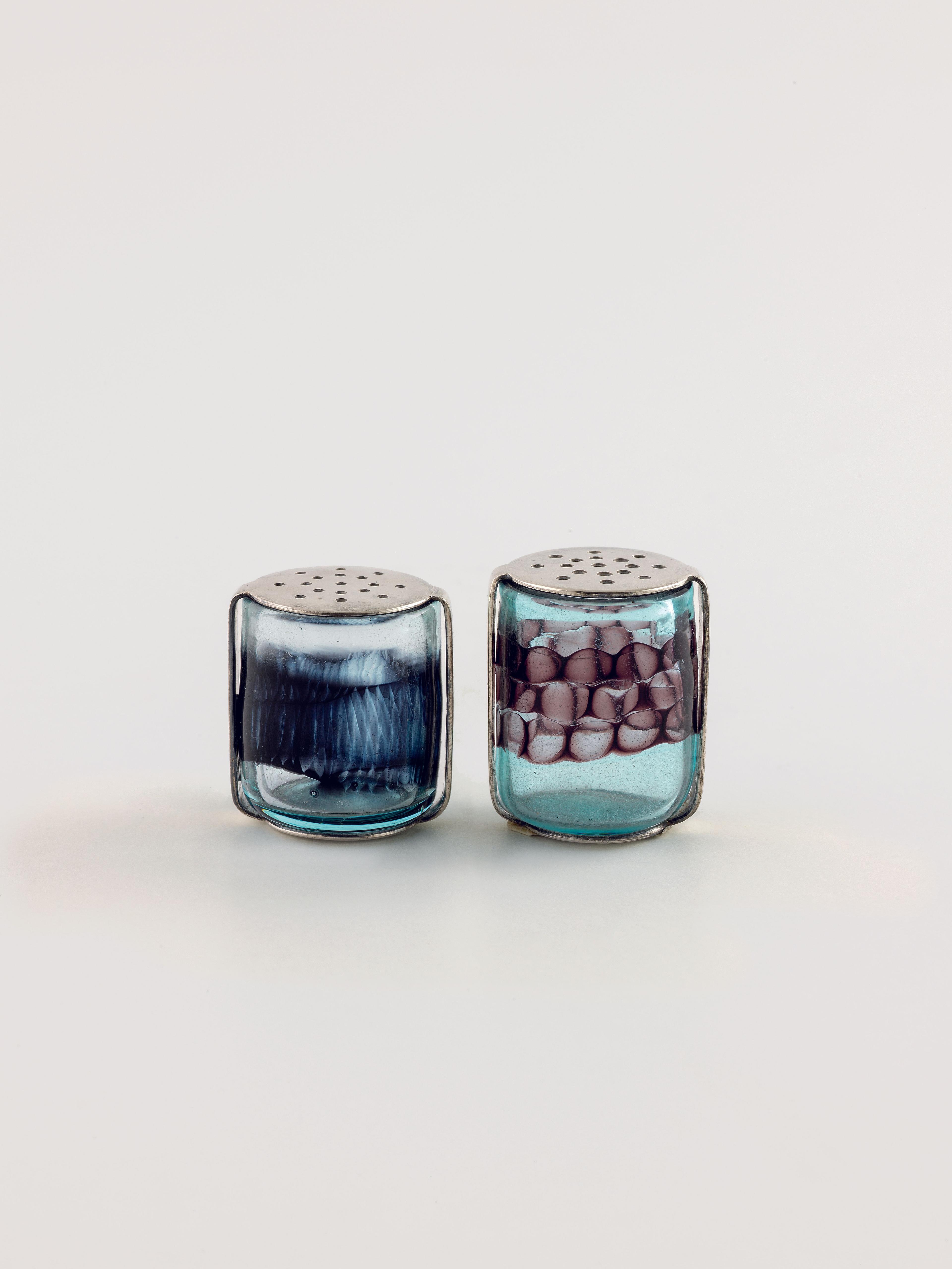 H 3,3 cm (Kugeln violett) / 3 cm (blaue Wellen), Ø 2,4 cm (Kugeln violett) / 2,5 cm (blaue Wellen)