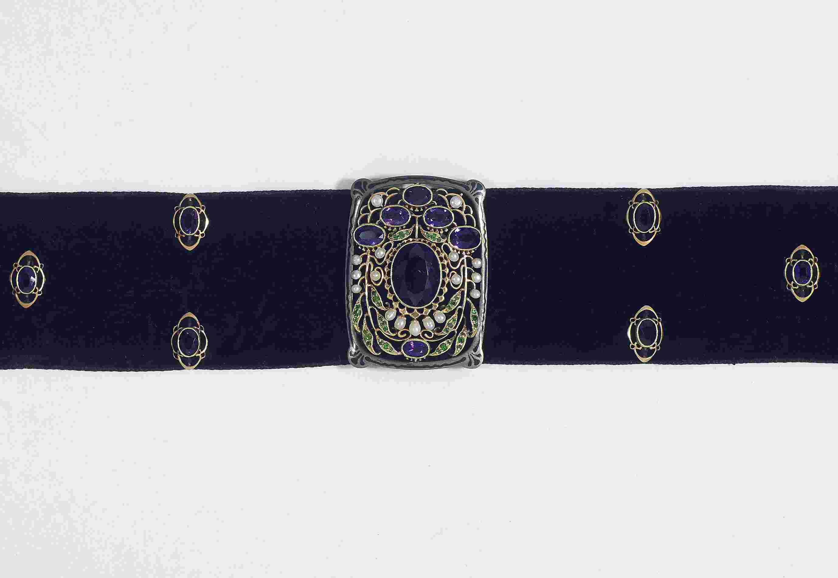Gold, Silber, Amethyste, Olivine, Perlen, Samt