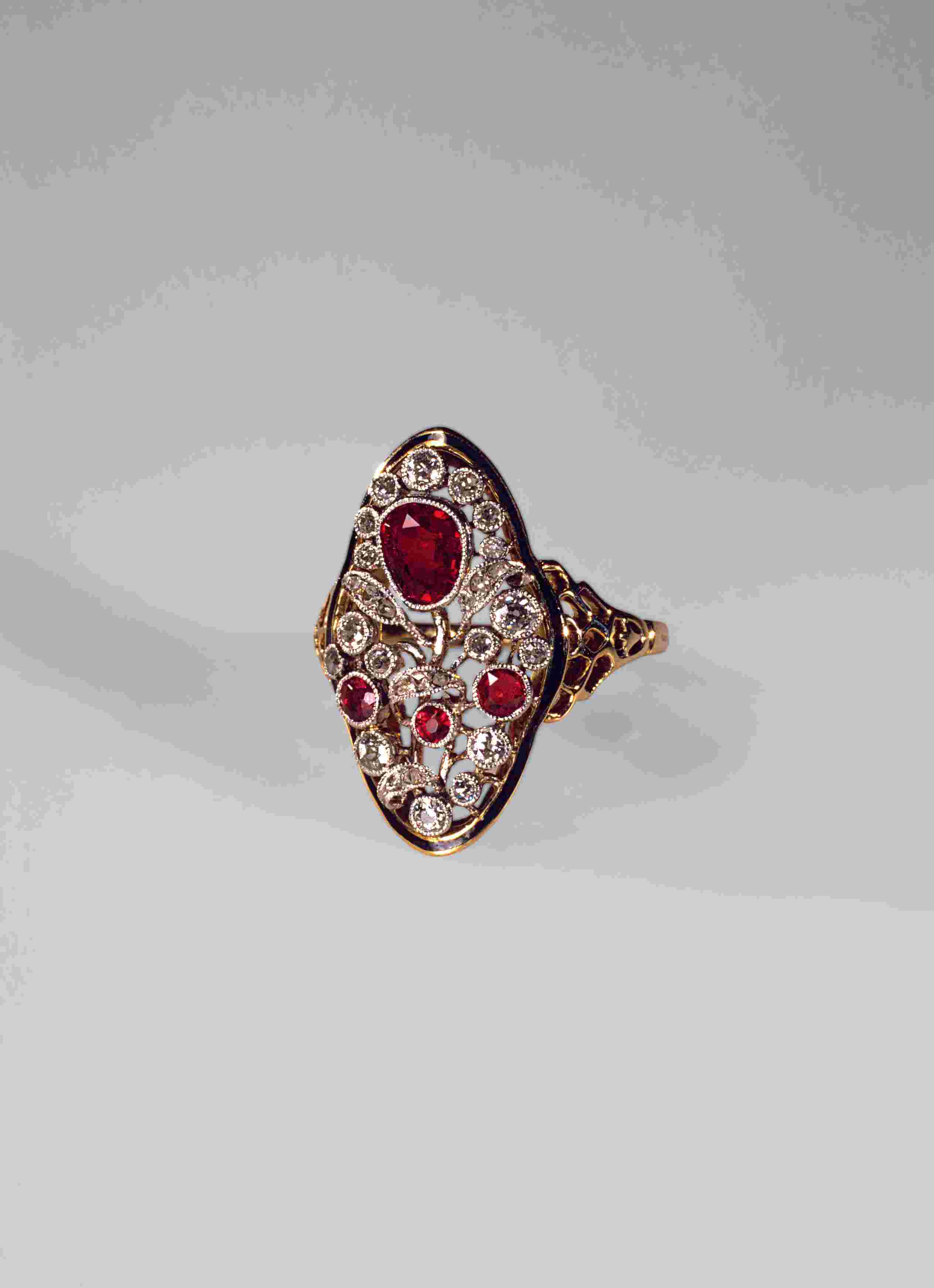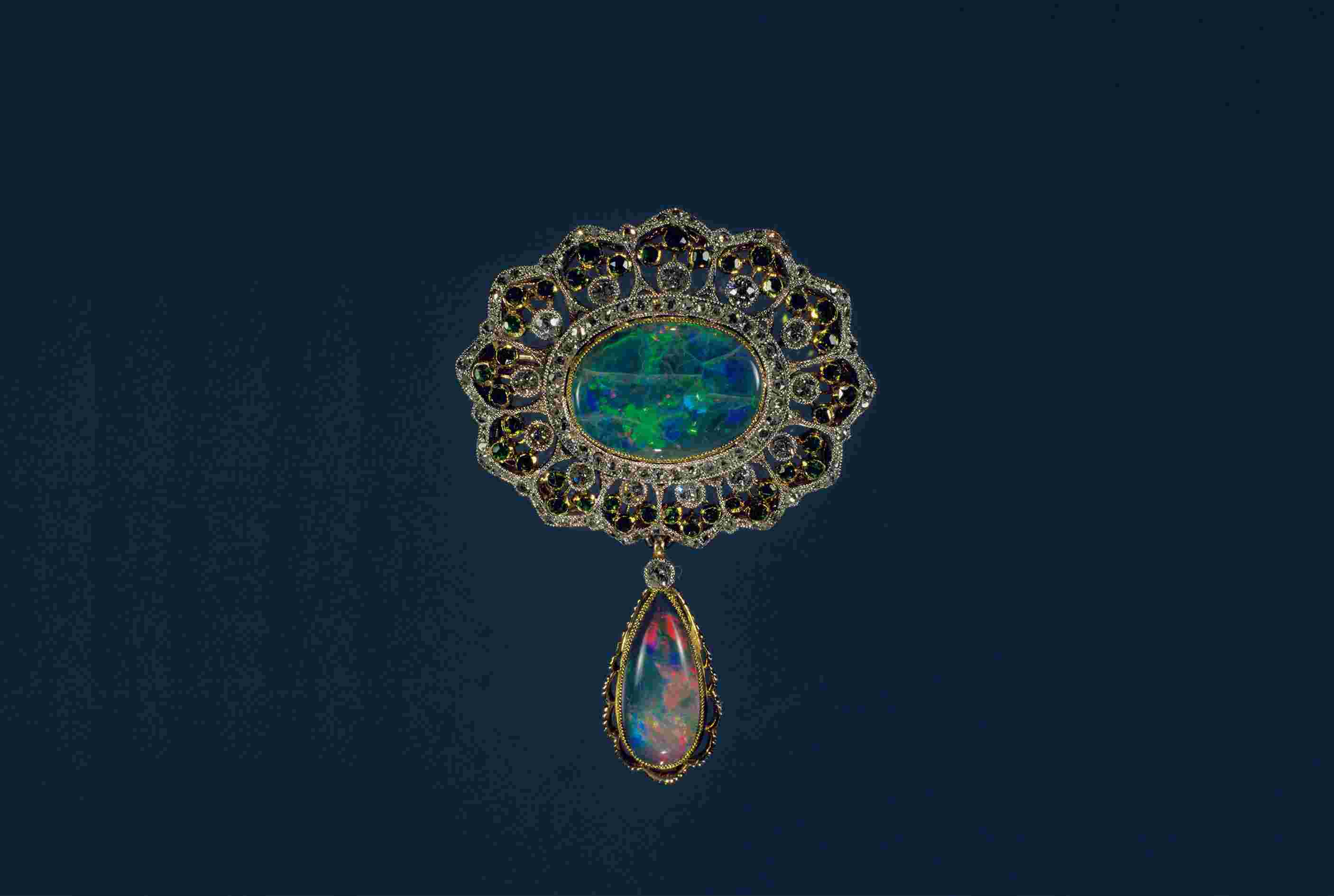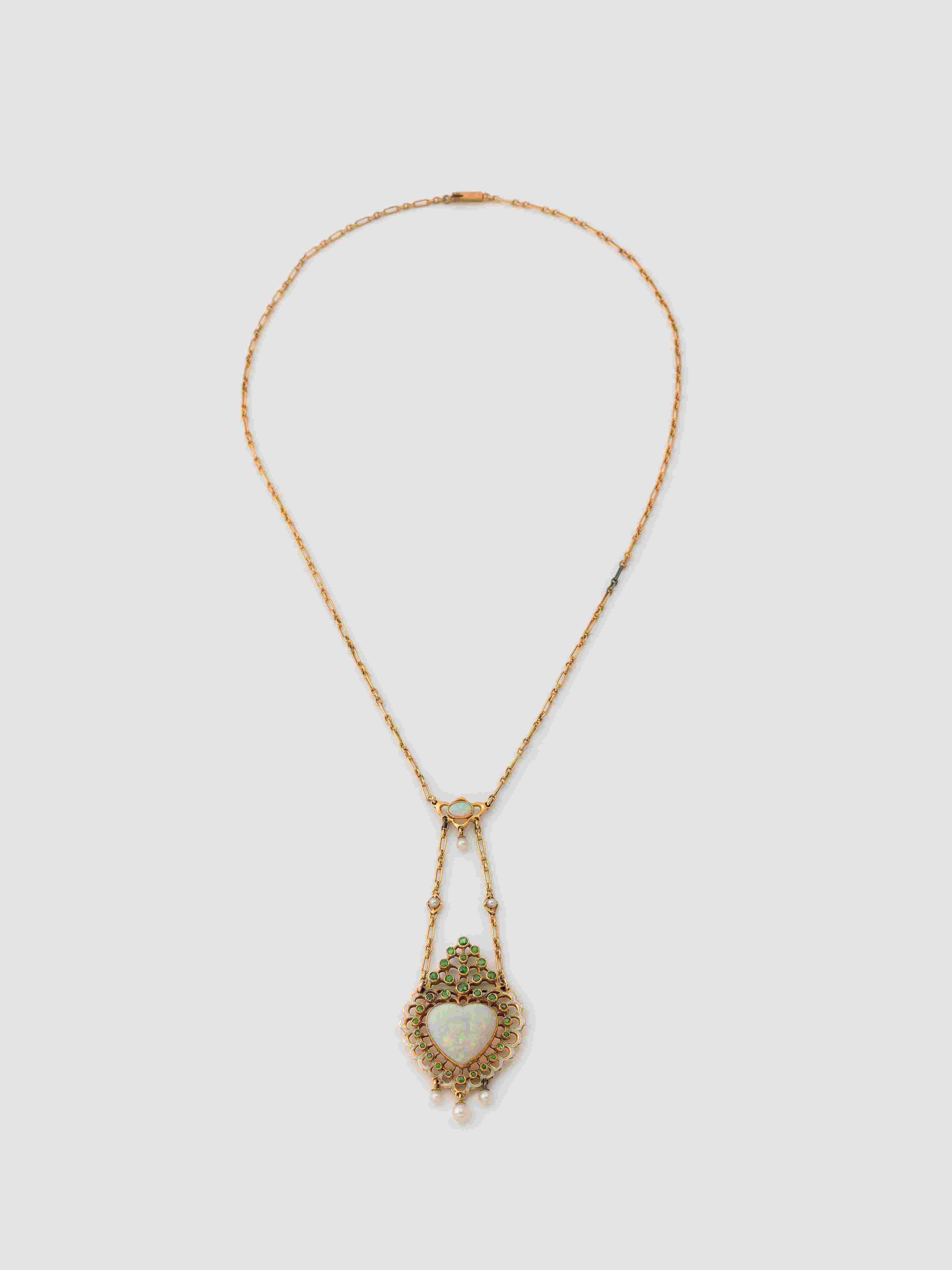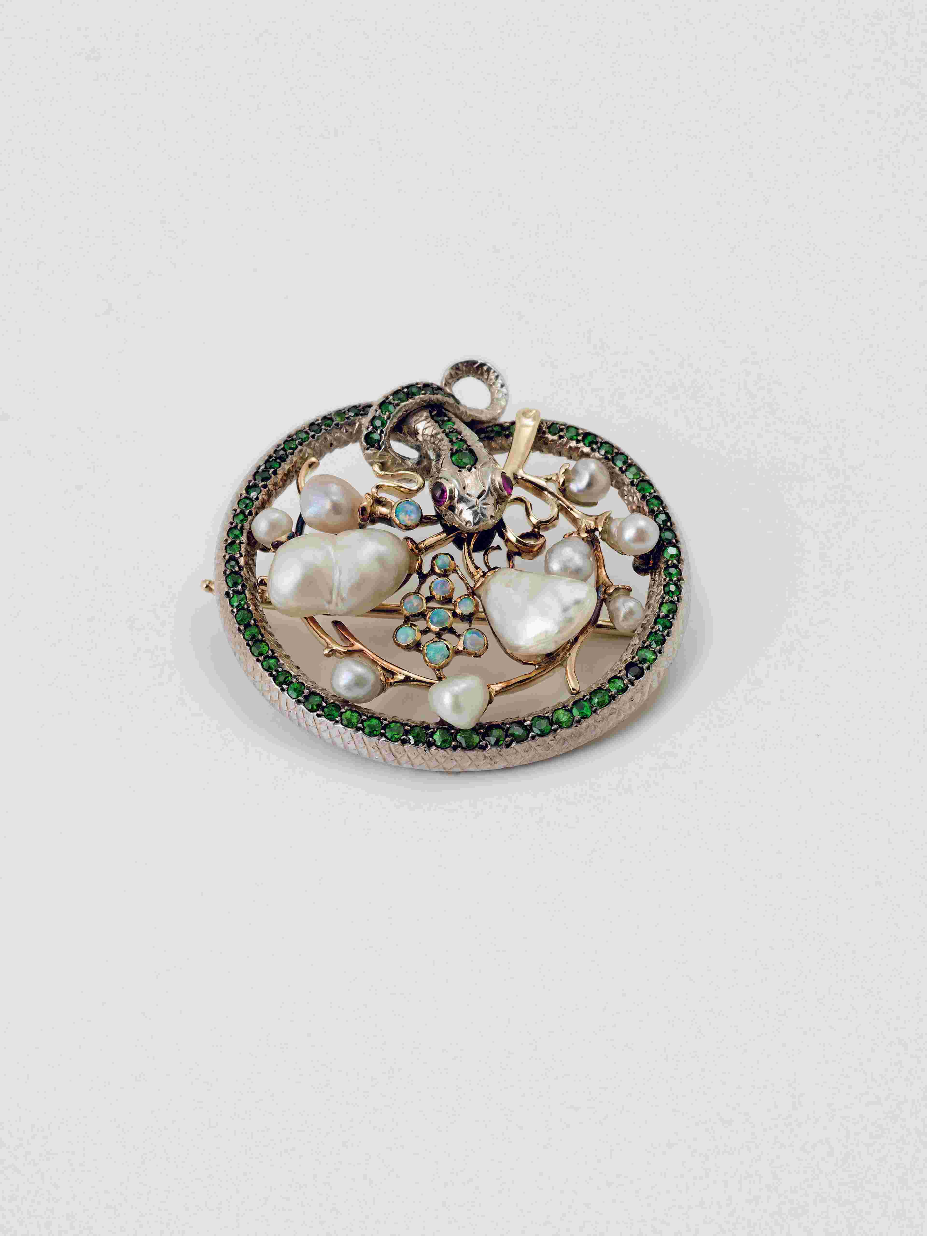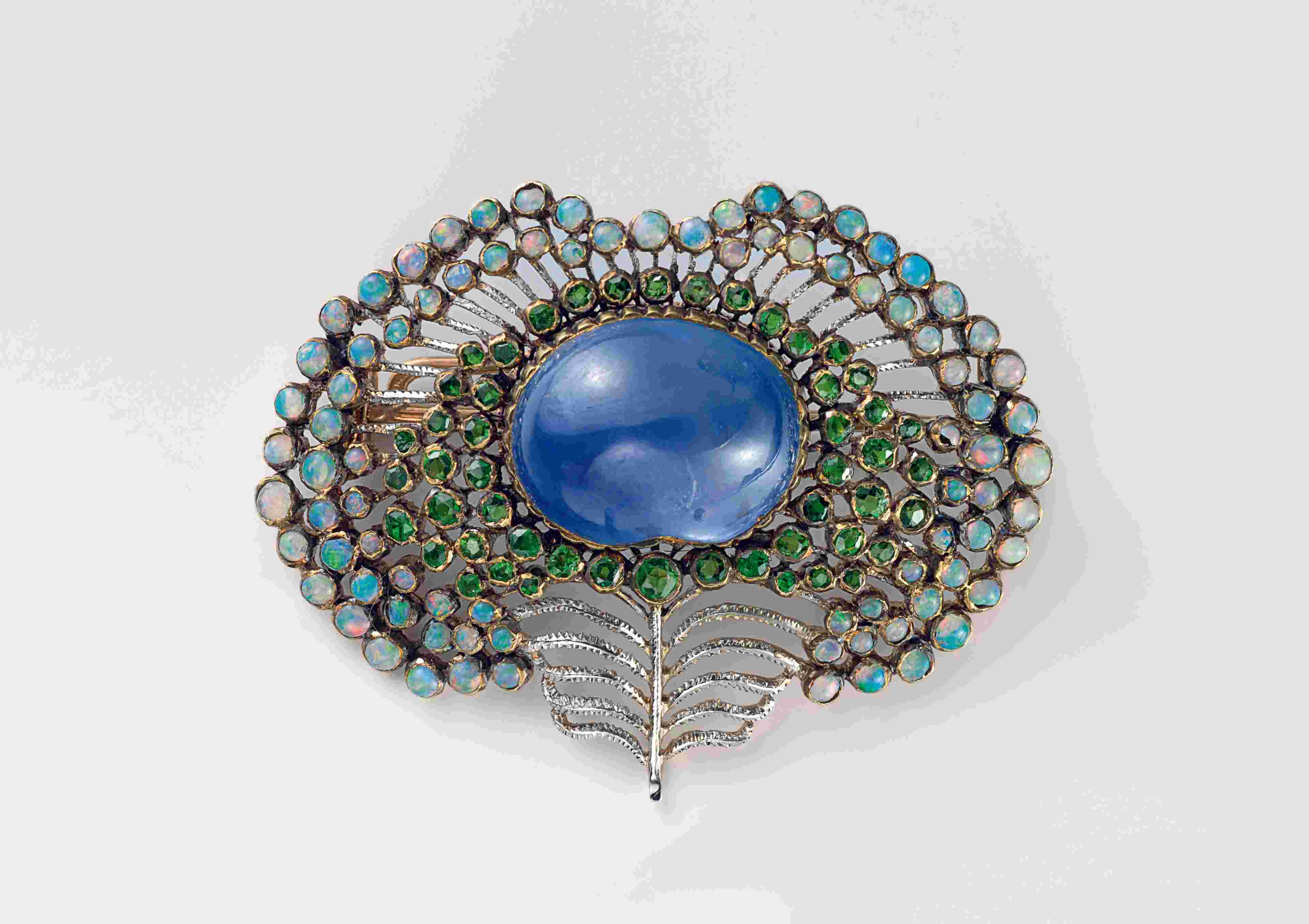Gold, Silber, gegossen, gelötet, ziseliert, Rubine, Olivine, Opale