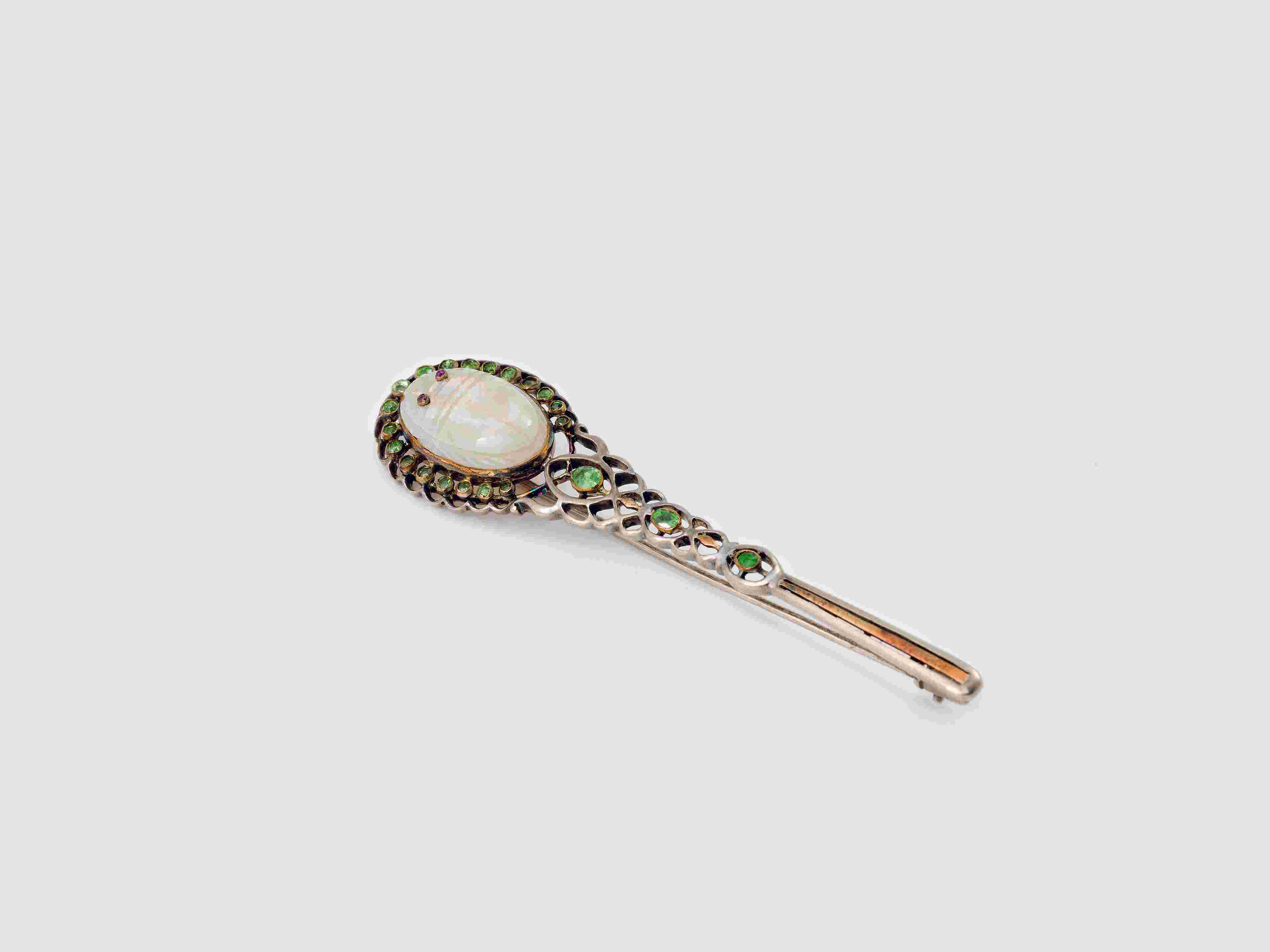 Silber, gegossen, Golddraht, Rubine, Olivine, Opal